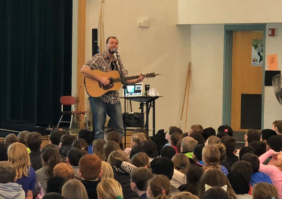 Using a combination of original and historical material, Alastair Moock demonstrates the ways that American music has been used to inspire courage and fuel broader movements for social change. Students will learn how Woody Guthrie grew into a champion for workers’ rights, how Martin LutherKing, Jr. used music in his fight to end segregation, how Bob Dylan used song craft to protest a war, and how Alastair and his daughter turned a personal journey through cancer into an uplifting album for “the world’s bravest kids.” Students will sing, laugh, and learn important lessons about their nation’s past.